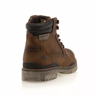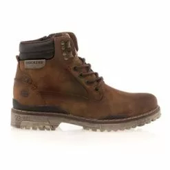Les amateurs d’un style naturel, authentique et confortable vont forcément se laisser tenter par ces boots Dockers pour homme. Leur nuance cognac présente un effet patiné et un toucher peau de pêche. À l’intérieur de cette chaussure montante, on retrouve une doublure en textile au motif écossais. On les adopte sans hésiter !
