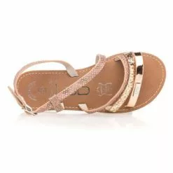 Le coup de cœur est immédiat pour cette ravissante paire de sandales roses plates. Ce modèle pour enfant associe une nuance brillante, un effet écaillé et une touche glitter sur ses fines lanières. Impossible de ne pas craquer pour ce petit trésor mode !