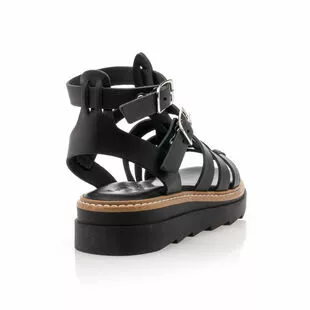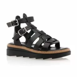 Comme chez les grands, la mode enfant surfe sur les tendances avec beaucoup de succès cette saison. Cette paire de sandales filles en cuir noir montées sur une semelle épaisse est un parfait exemple des créations irrésistibles du moment. Les fashionistas en herbe vont forcément craquer !