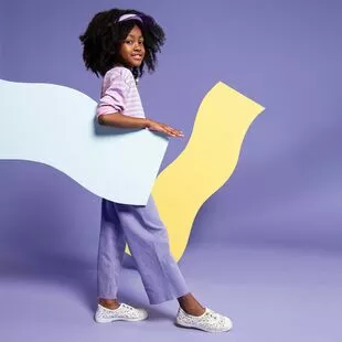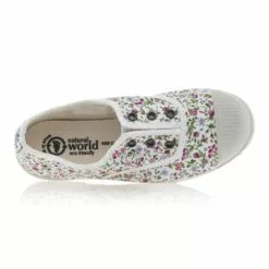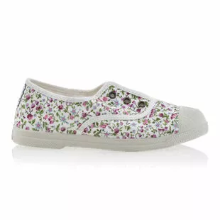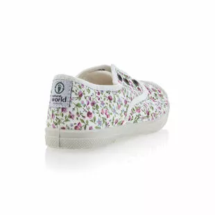 Ces jolies petites baskets à fleurs pour enfant nous sont proposées par la marque écoresponsable Natural World. Elles se composent d’une tige en toile de coton biologique au motif « liberty » et d’une semelle en caoutchouc flexible qui se prolonge jusque sur le bout du pied sous la forme d’une coque de protection striée. Elles sont livrées dans une boite à chaussures en carton recyclé. On aime aussi ce modèle pour son aspect hygiénique et pratique. En effet, il dispose d’une semelle respirante amovible et peut être lavé en machine (maximum 30°C). Un must-have !