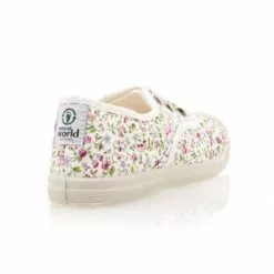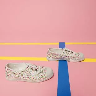 Robe tee-shirt pastel et blouson en jean ? Short blanc et top à col V ? Ou peut-être legging et tunique rose ? Quelle que soit la tenue du jour, cette jolie petite paire de tennis liberty Natural World viendra compléter le look avec style et confort. On adore la légèreté de ce modèle composé d’une toile de coton biologique à l’imprimé fleuri et d’une semelle souple en caoutchouc naturel. Sain et pratique, il passe en machine à 30°C et se laisse sécher à l’air libre. Il sera livré dans une boîte à chaussures en carton recyclé. L’un de nos coups de cœur du moment !