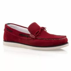 Le mocassin en croûte de cuir pour homme se décline ici dans une version chaleureuse avec ce modèle paré d’une profonde nuance rouge. Cette paire de chaussures ultra confortable fonctionnerait tout particulièrement bien dans une tenue comportant un bleu marine, un blanc cassé ou encore un vert kaki.